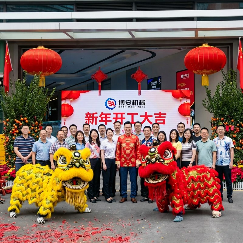 Dans l'ambiance festive de l'Année du Cheval, Boan Machinery Co., Ltd. a célébré en grande pompe le 24 février 2026 (huitième jour du premier mois lunaire) le lancement de sa nouvelle année. L'entreprise vibrait de joie et d'enthousiasme, tous les employés étant réunis pour accueillir cette nouvelle année de travail et s'engager avec l'énergie et le dynamisme d'un cheval au galop.